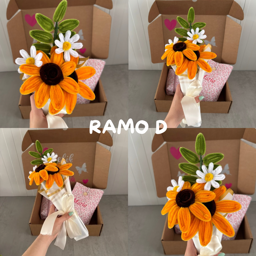 • Ramo de flores hecho a mano con limpiapipas. Al ser hecho a mano puede tener pequeños desperfectos que a penas son visibles.