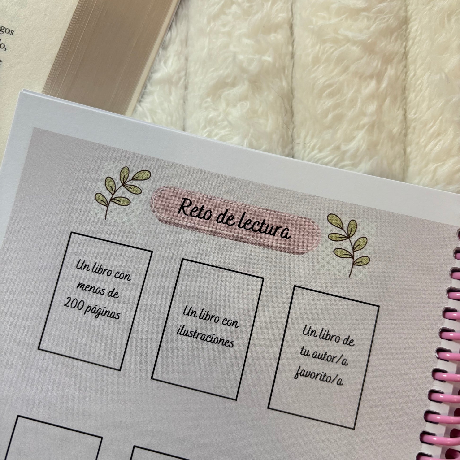 Se trata de un cuaderno de lecturas diseñado por Las creaciones de Aila. Contiene 100 hojas para hacer 50 reseñas de las lecturas, apuntar los libros que tienes pendientes de leer, ver cuáles han sido tus libros favoritos del año y de cada mes, anotar cuándo lees y cuánto, así como puntuar tus lecturas con la portada del propio libro. También cuenta con diferentes retos de lectura.