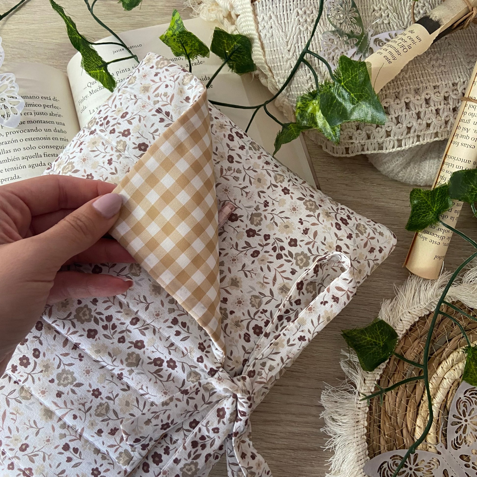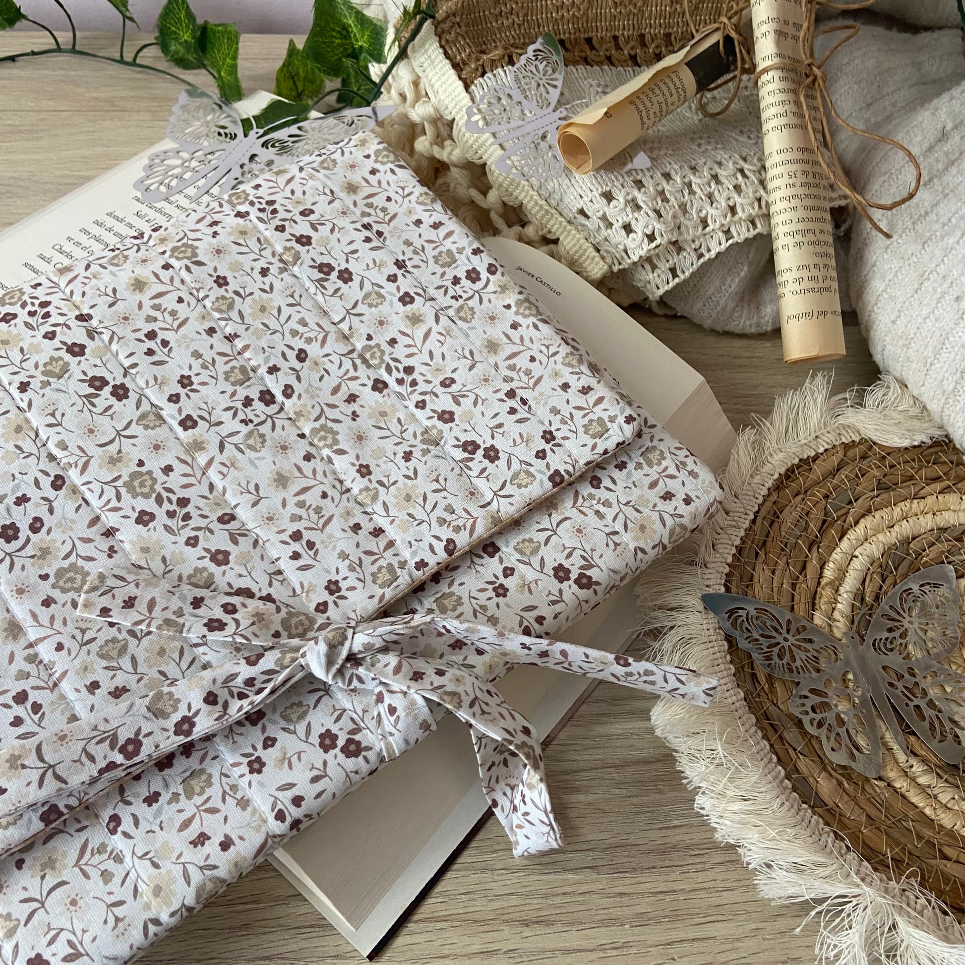 Funda acolchada con cierre de solapa y lazo, donde podrás guardar tu lectura de forma segura, práctica y elegante.