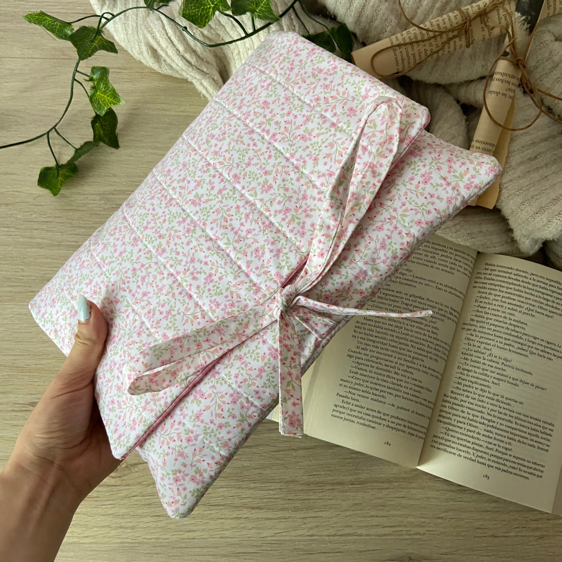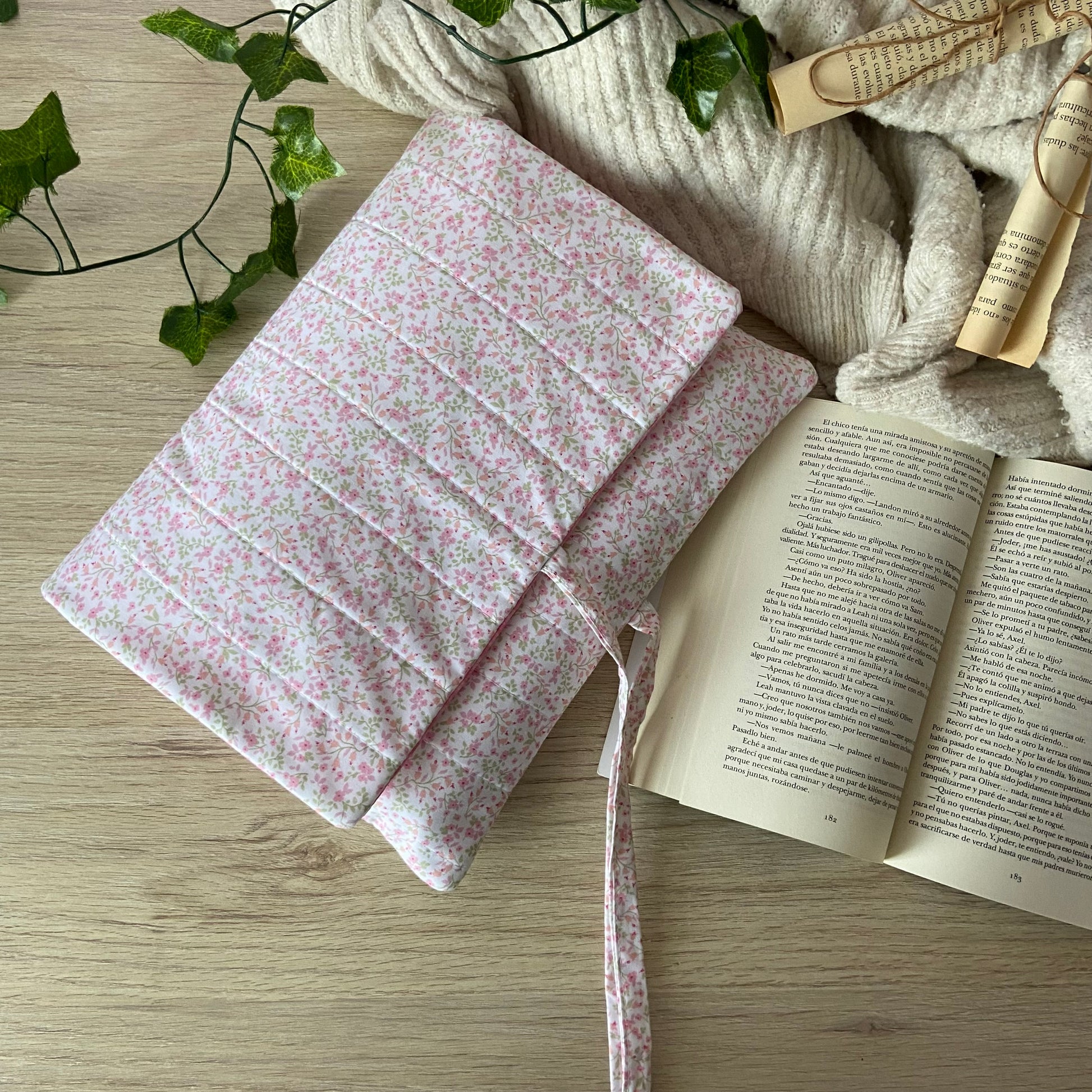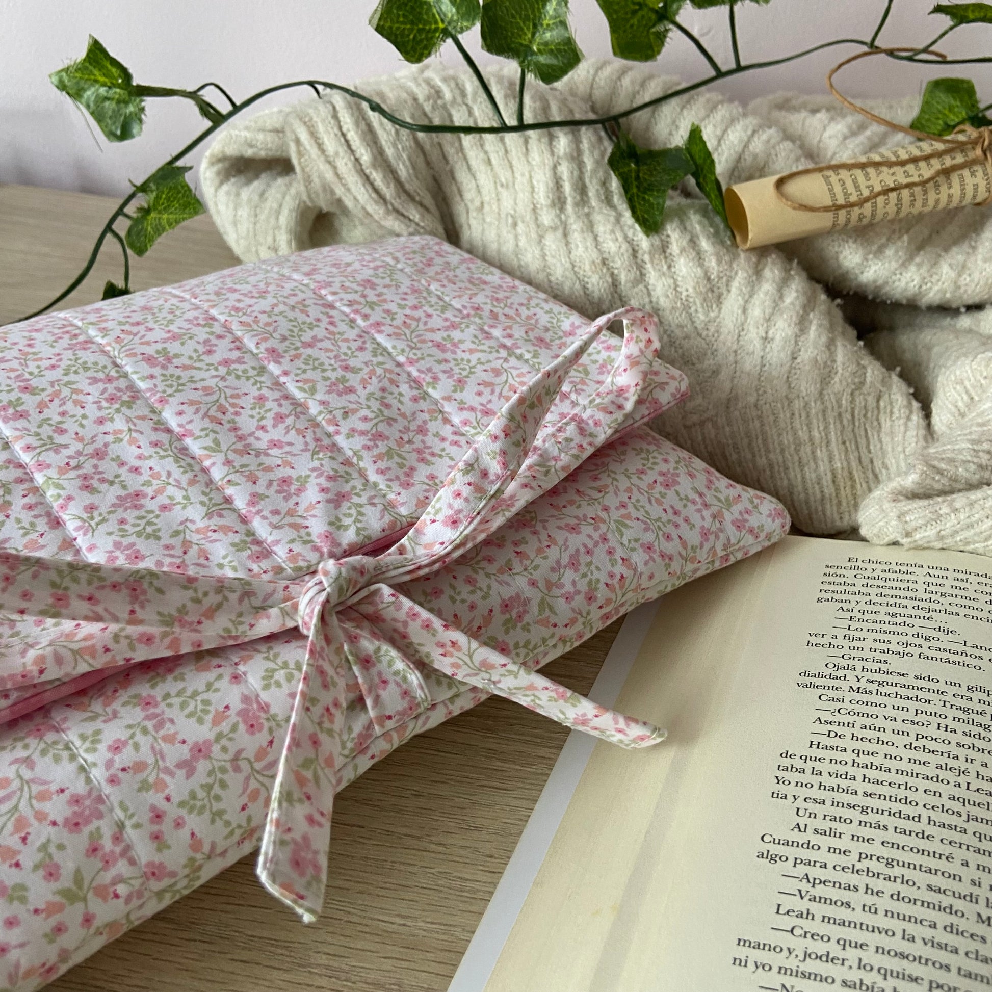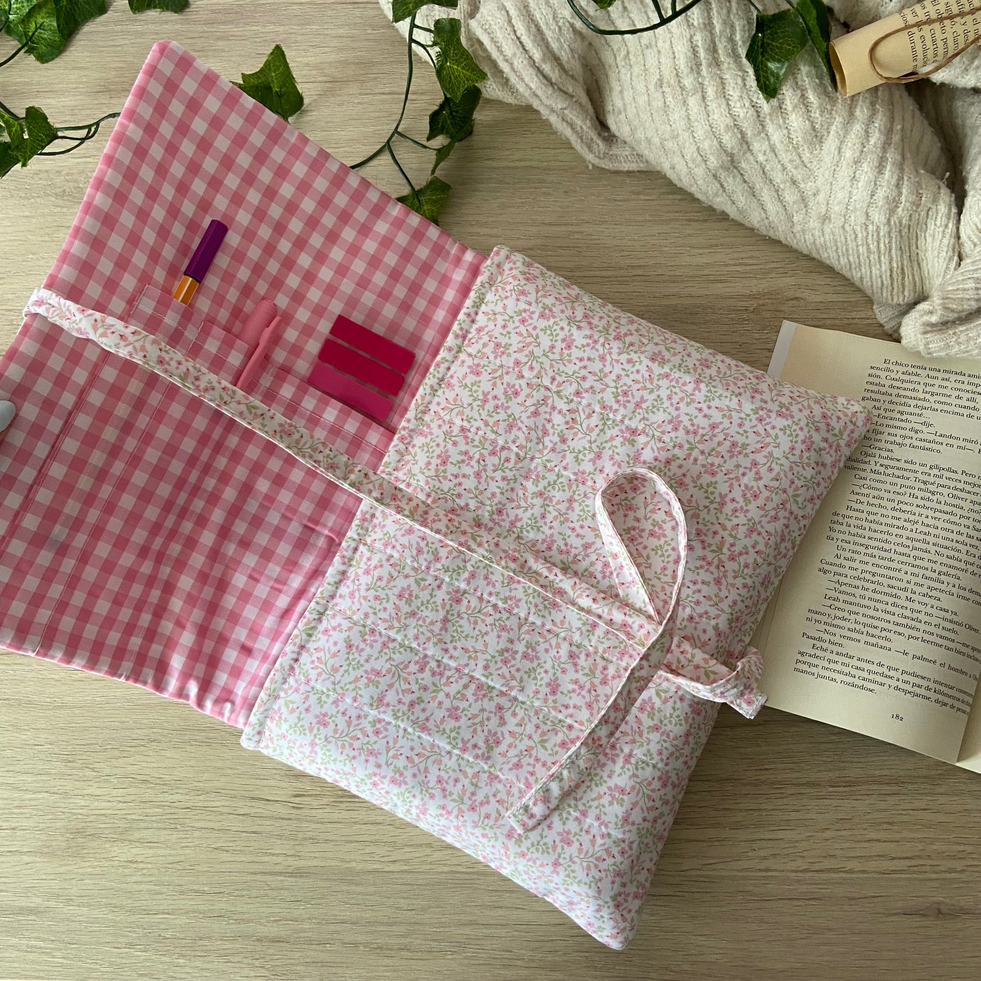 Funda acolchada con cierre de solapa y lazo, donde podrás guardar tu lectura de forma segura, práctica y elegante.