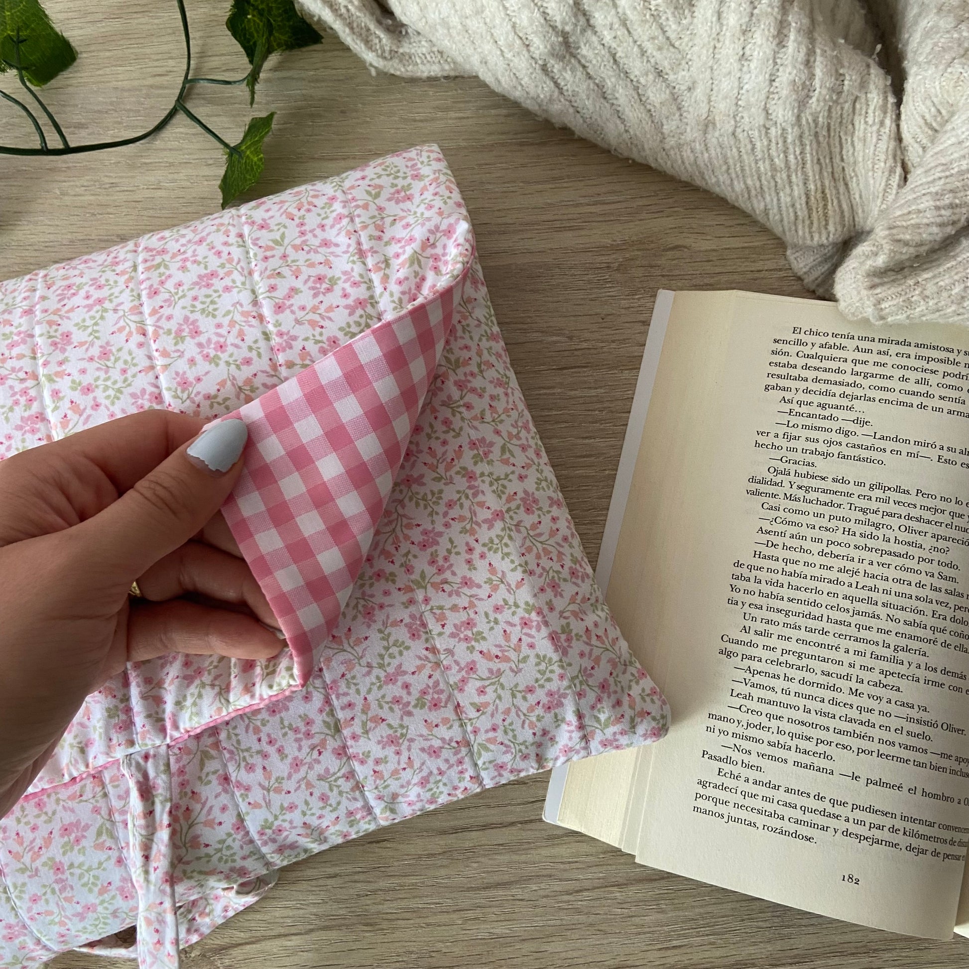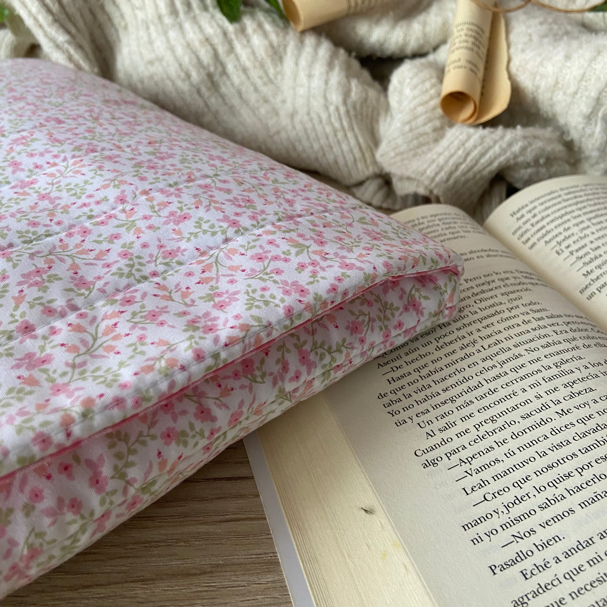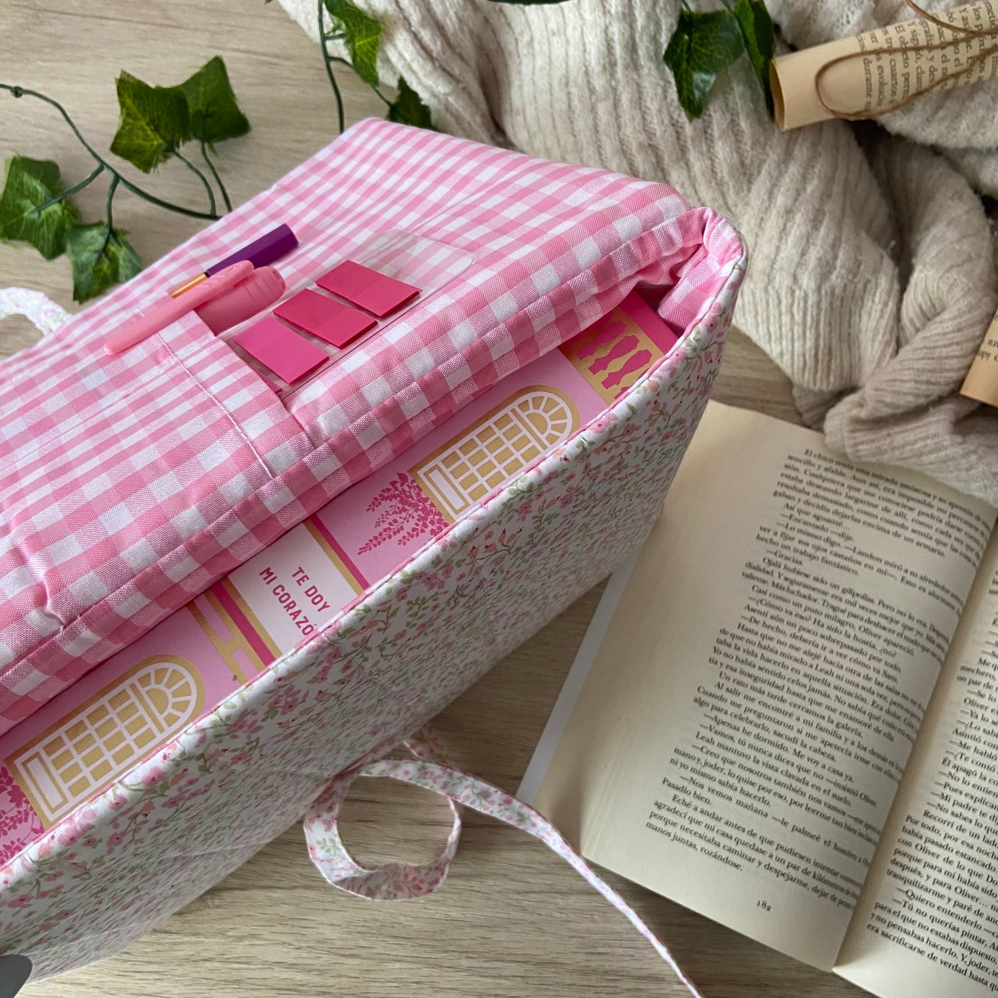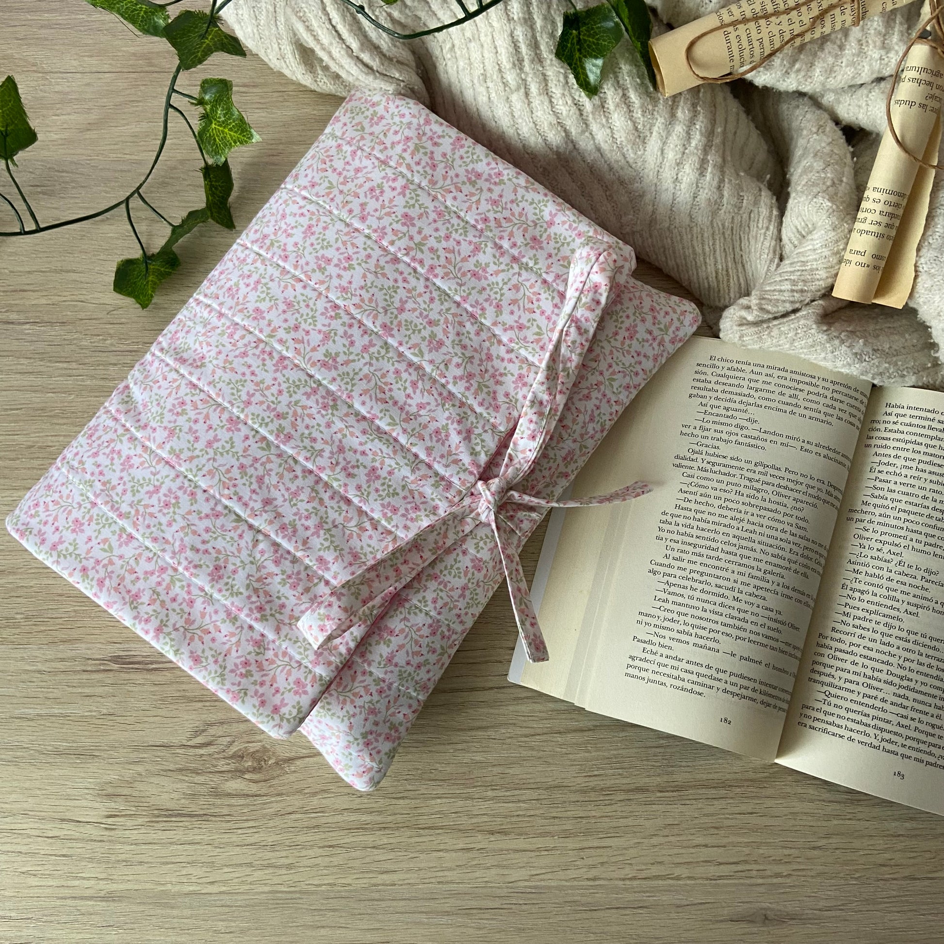 Funda acolchada con cierre de solapa y lazo, donde podrás guardar tu lectura de forma segura, práctica y elegante.