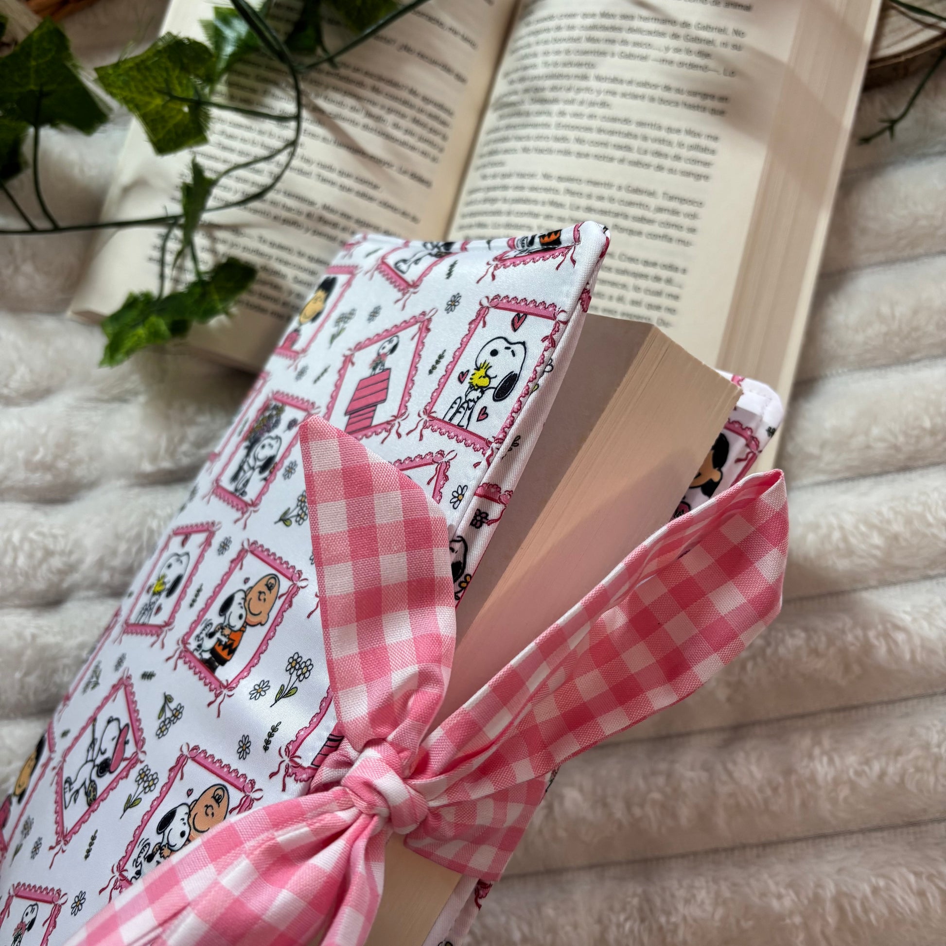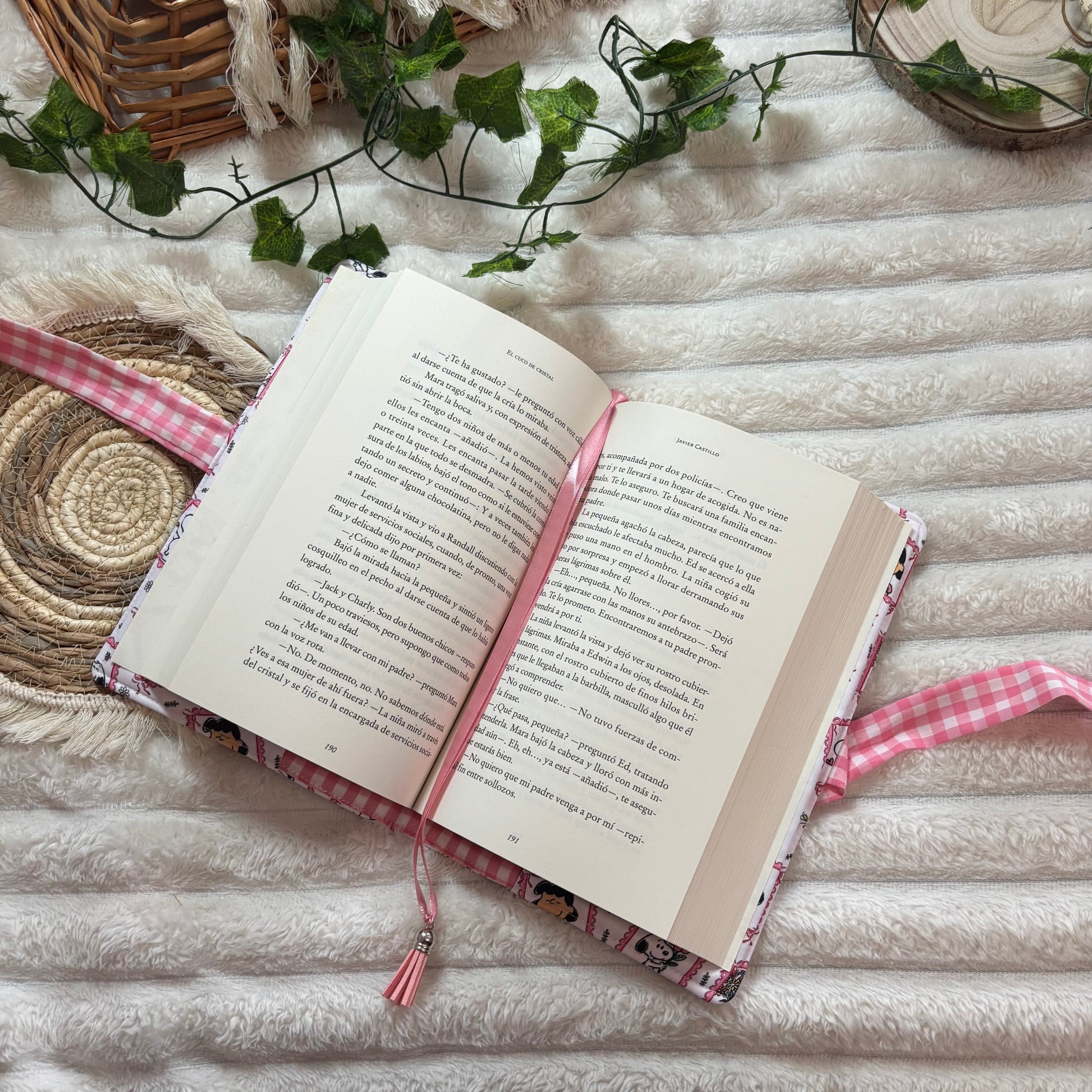 Funda de solapas con cierre de lazo a conjunto con el forro, perfecta para lecturas de tamaño estándar (libros de máximo aprox 22,5cm).