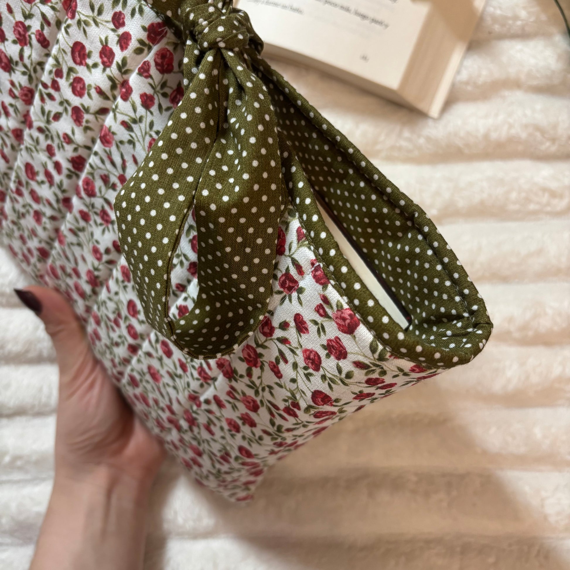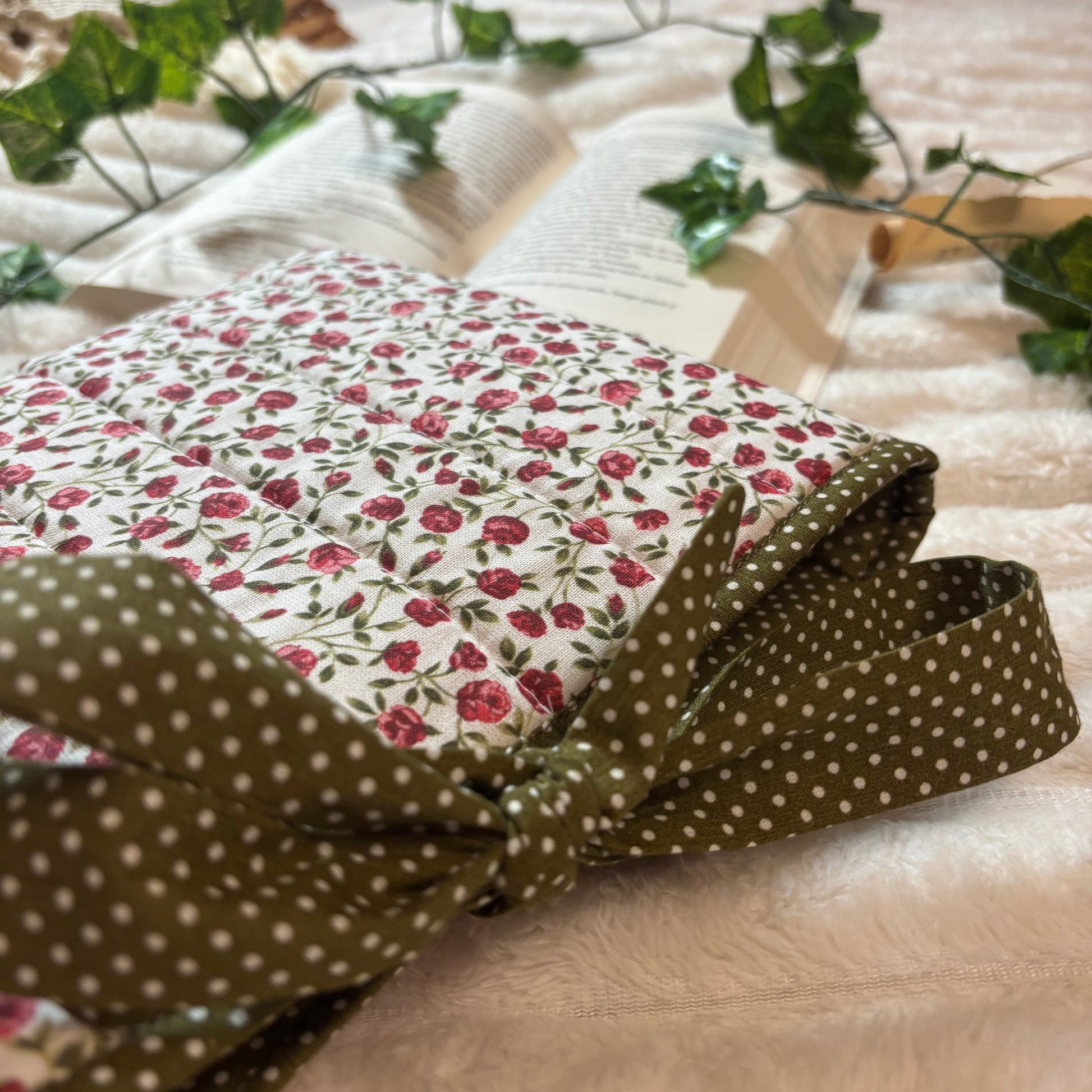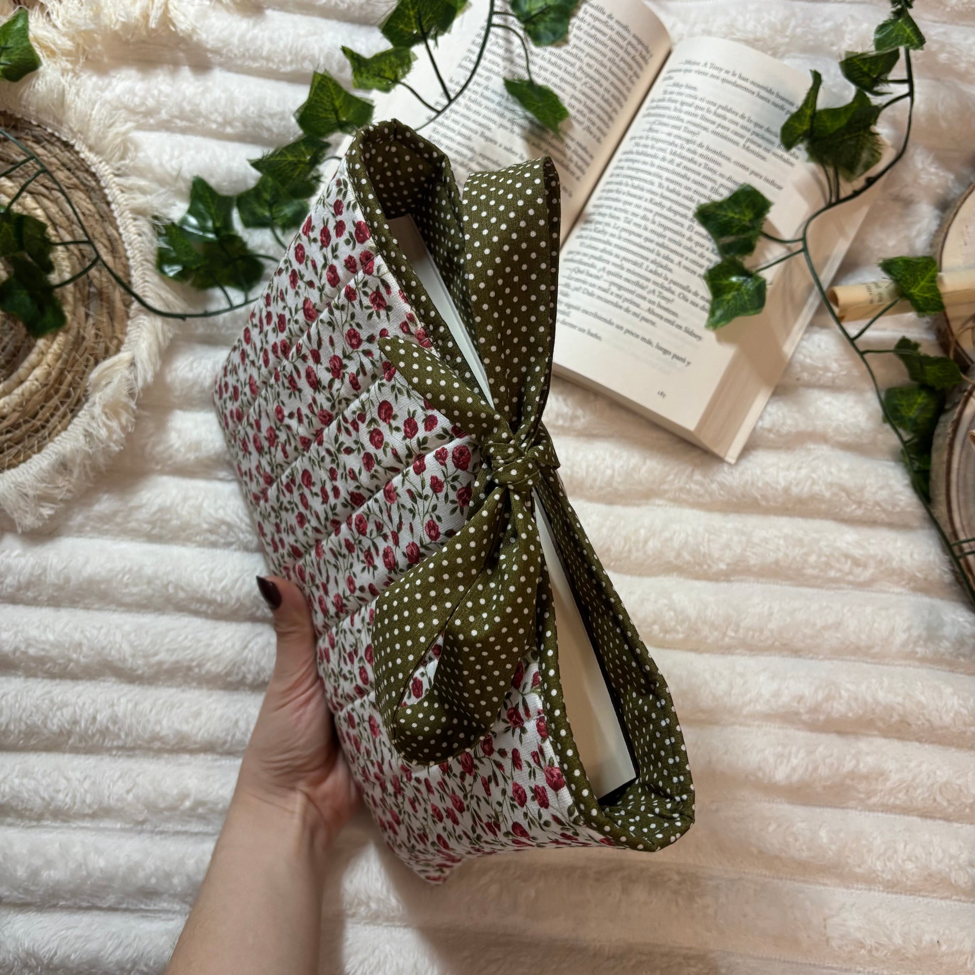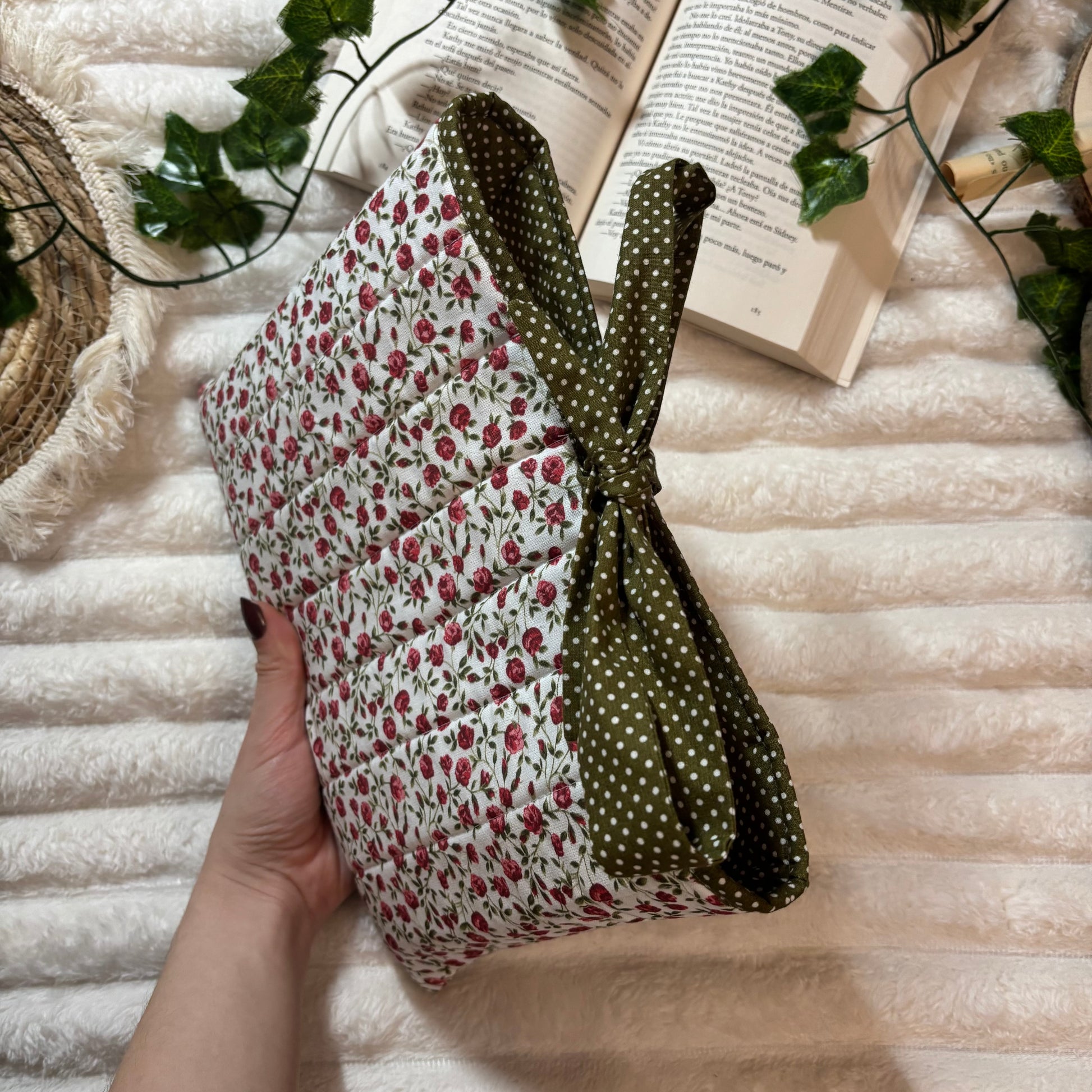 Funda literaria acolchada con forro y lazo a conjunto. Las medidas son de 21x28cm
