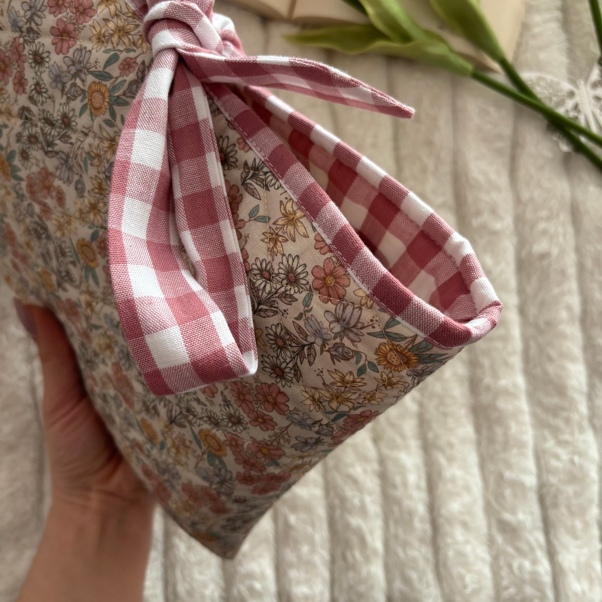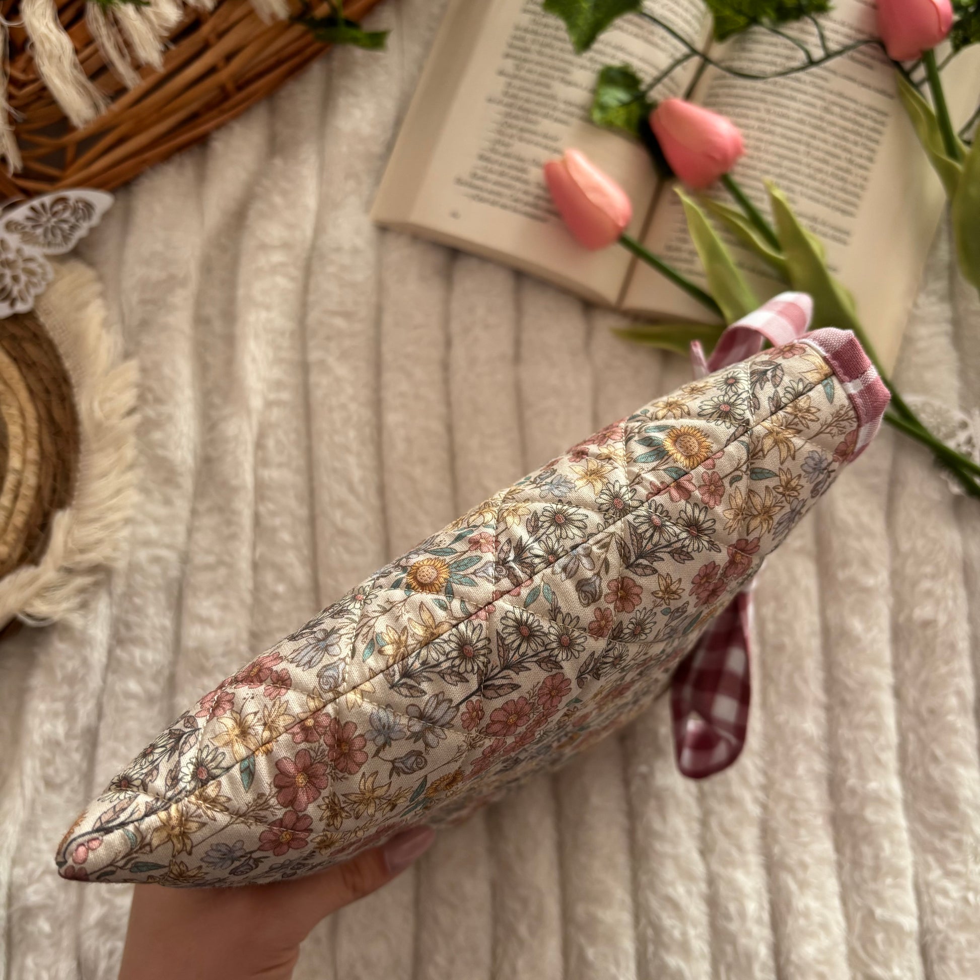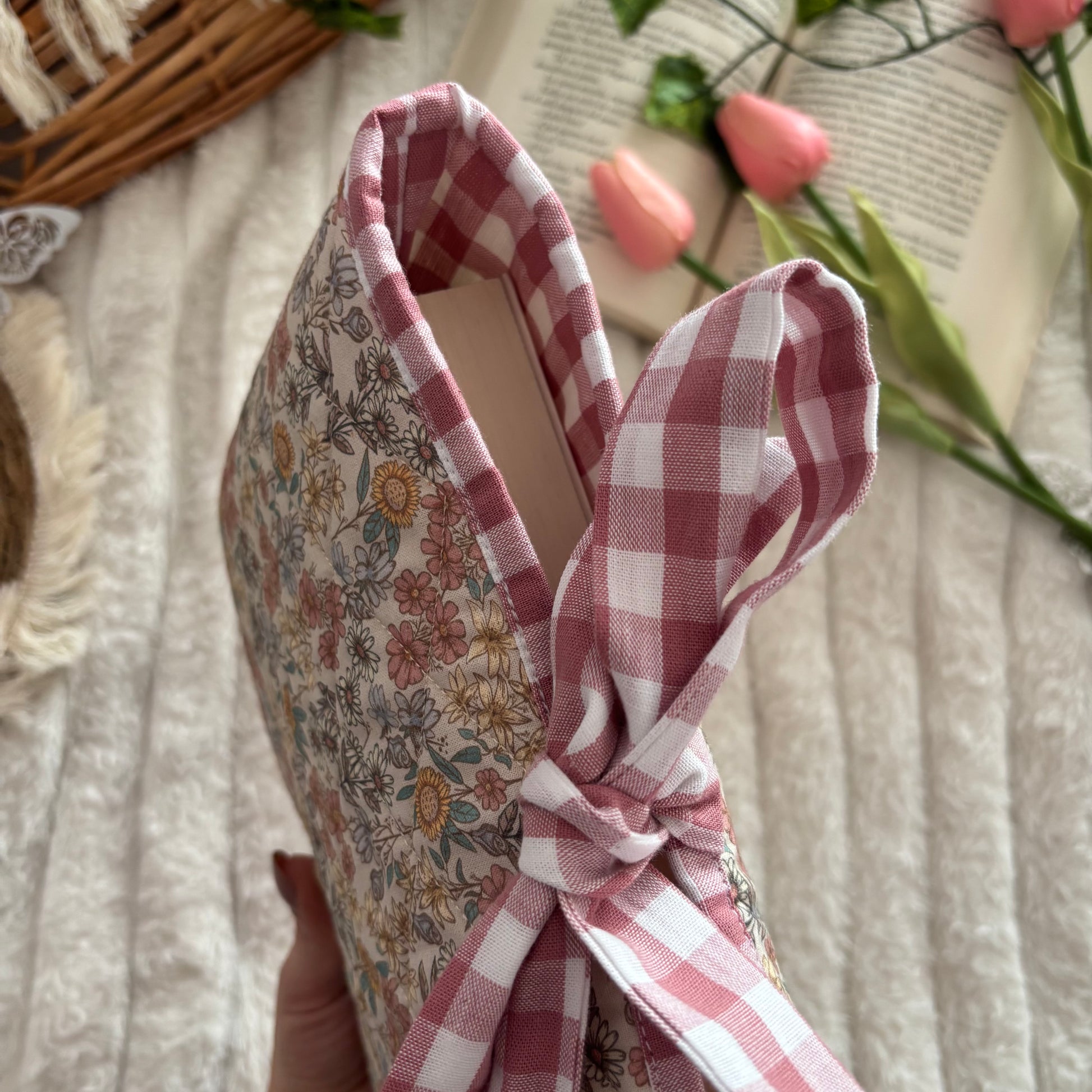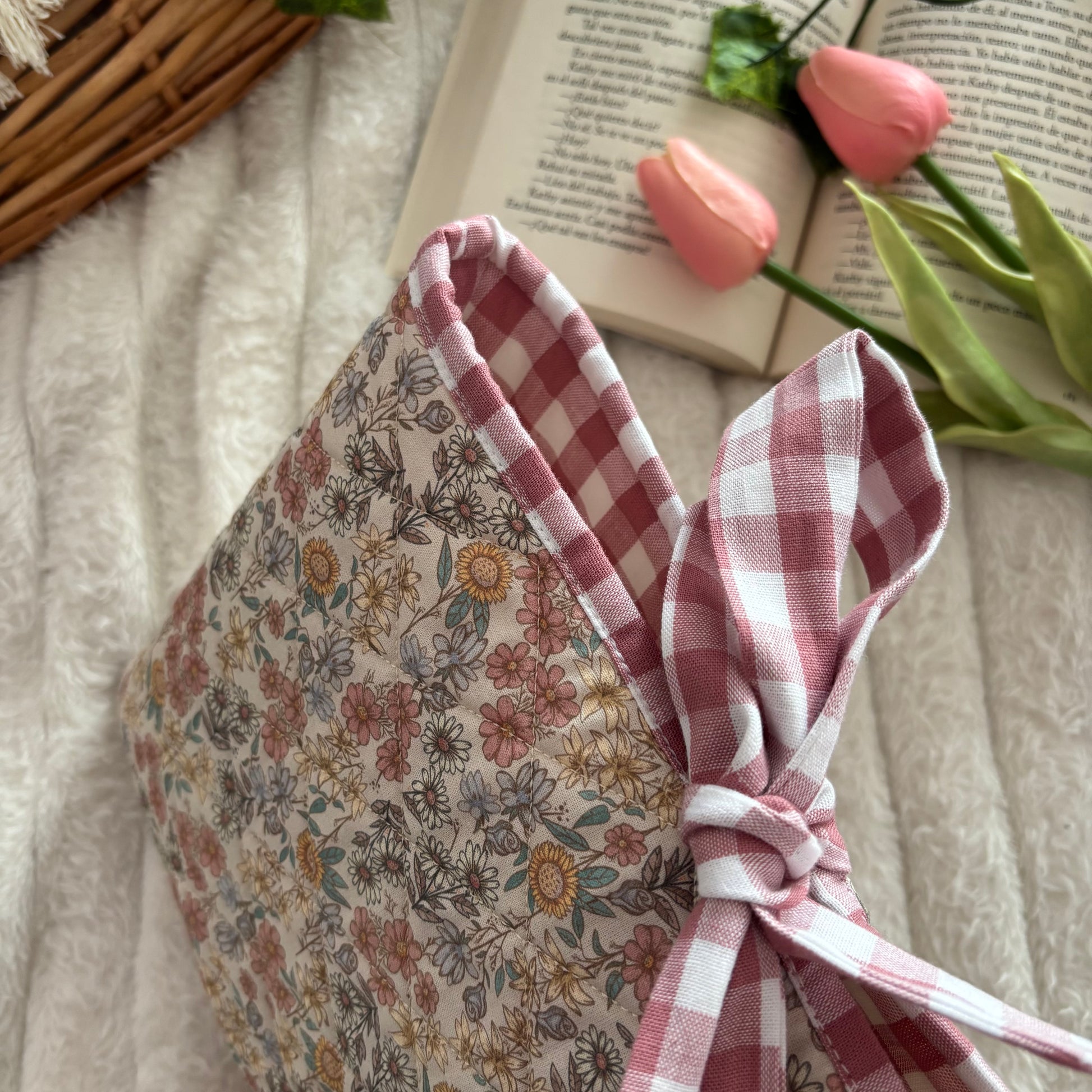 Funda literaria acolchada, con forro y lazo a conjunto. Las medidas son de 21x28cm.