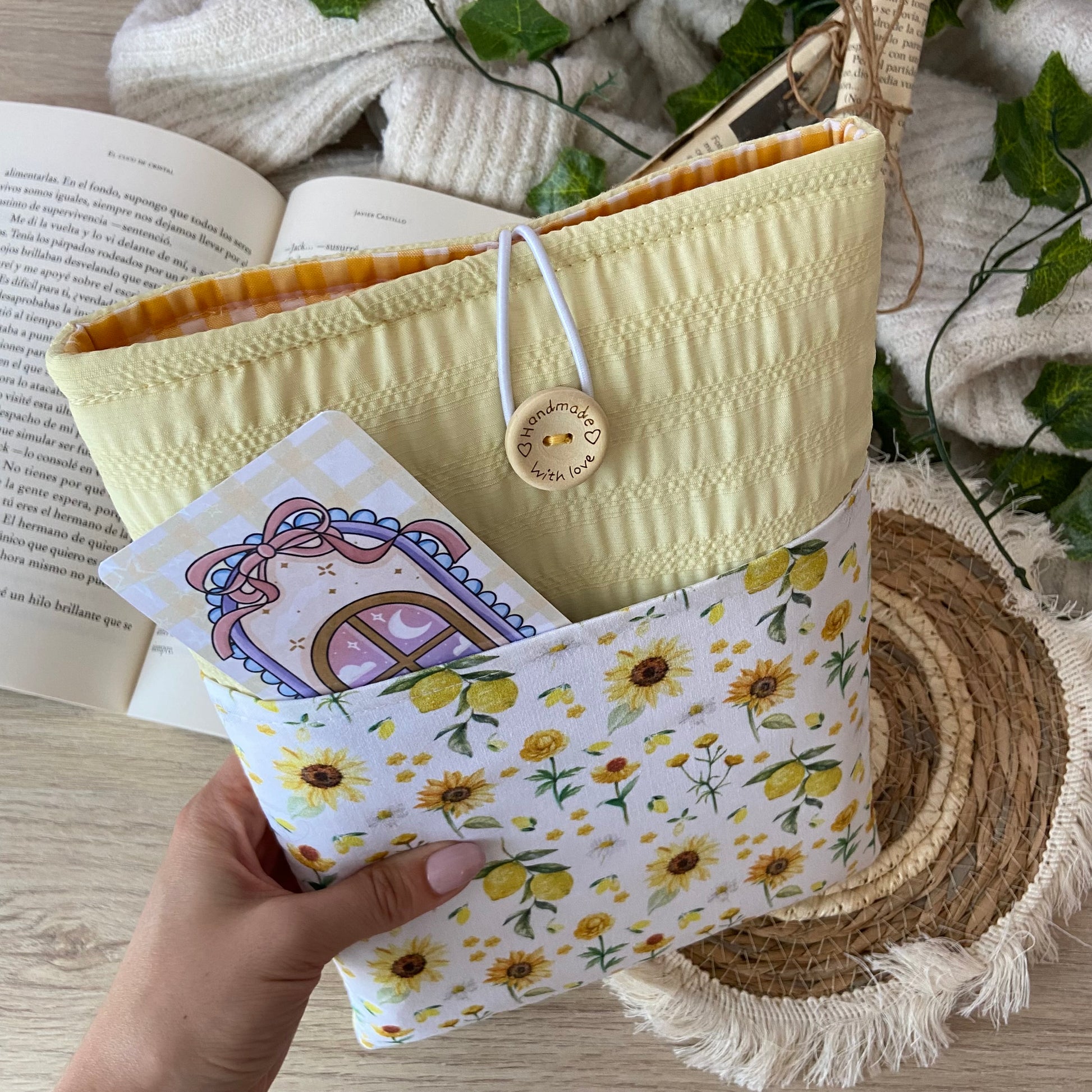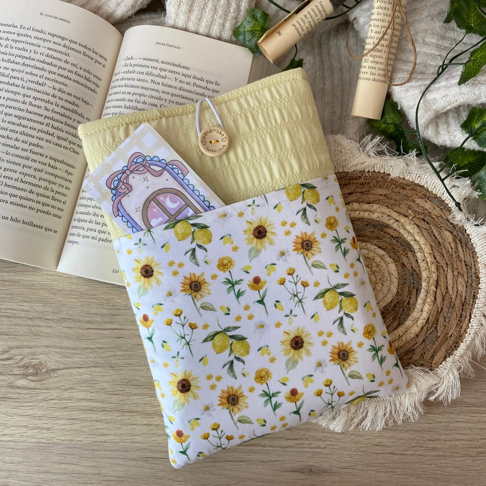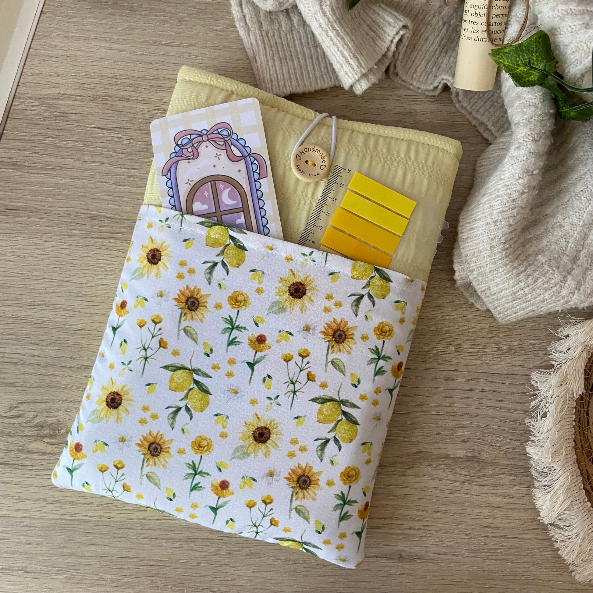 Funda literaria girasoles y limones con bolsillo