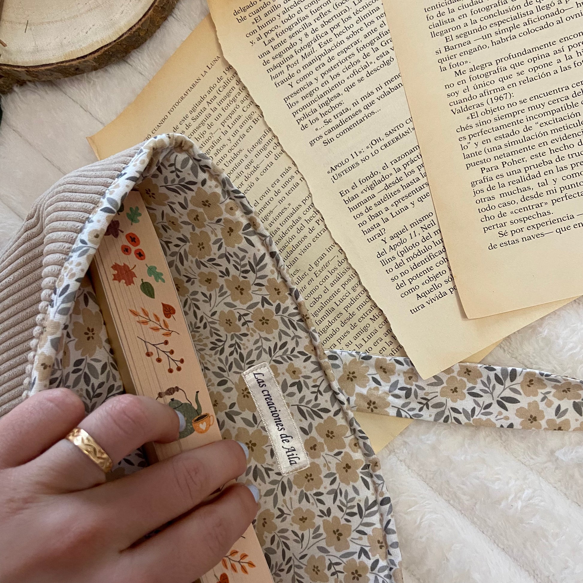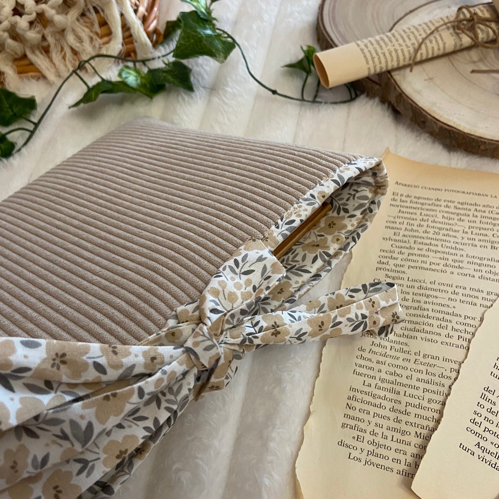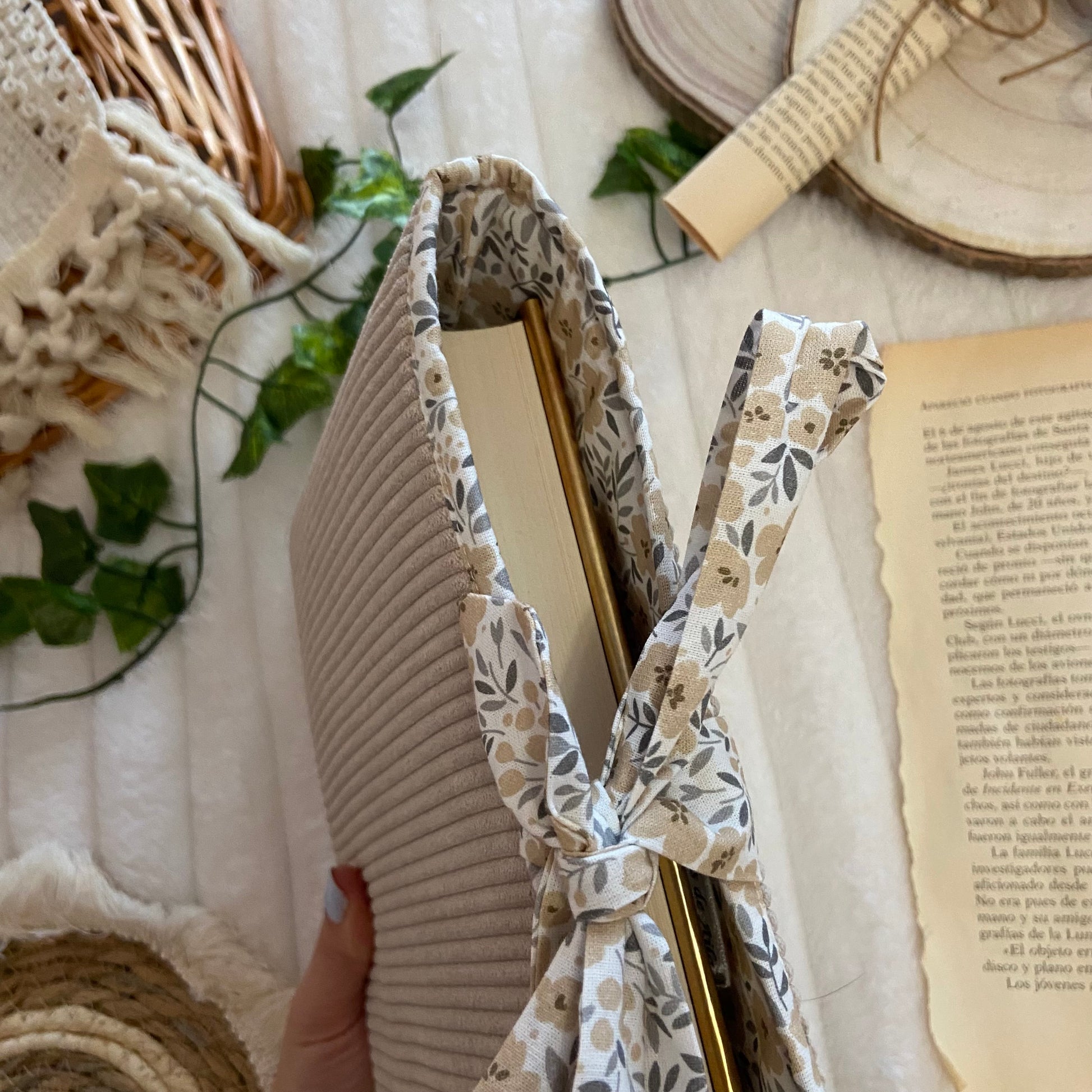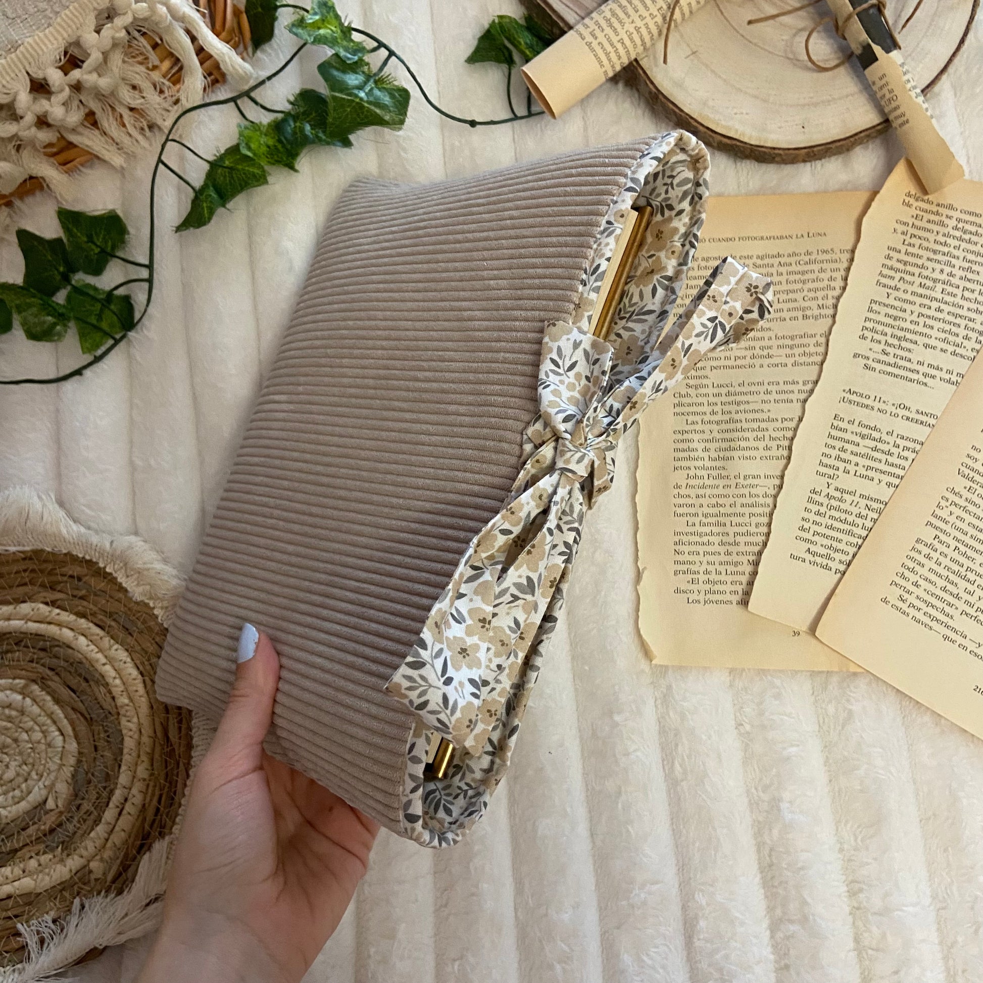 Funda literaria de pana con forro y lazo a conjunto. Las medidas son de 21x28cm