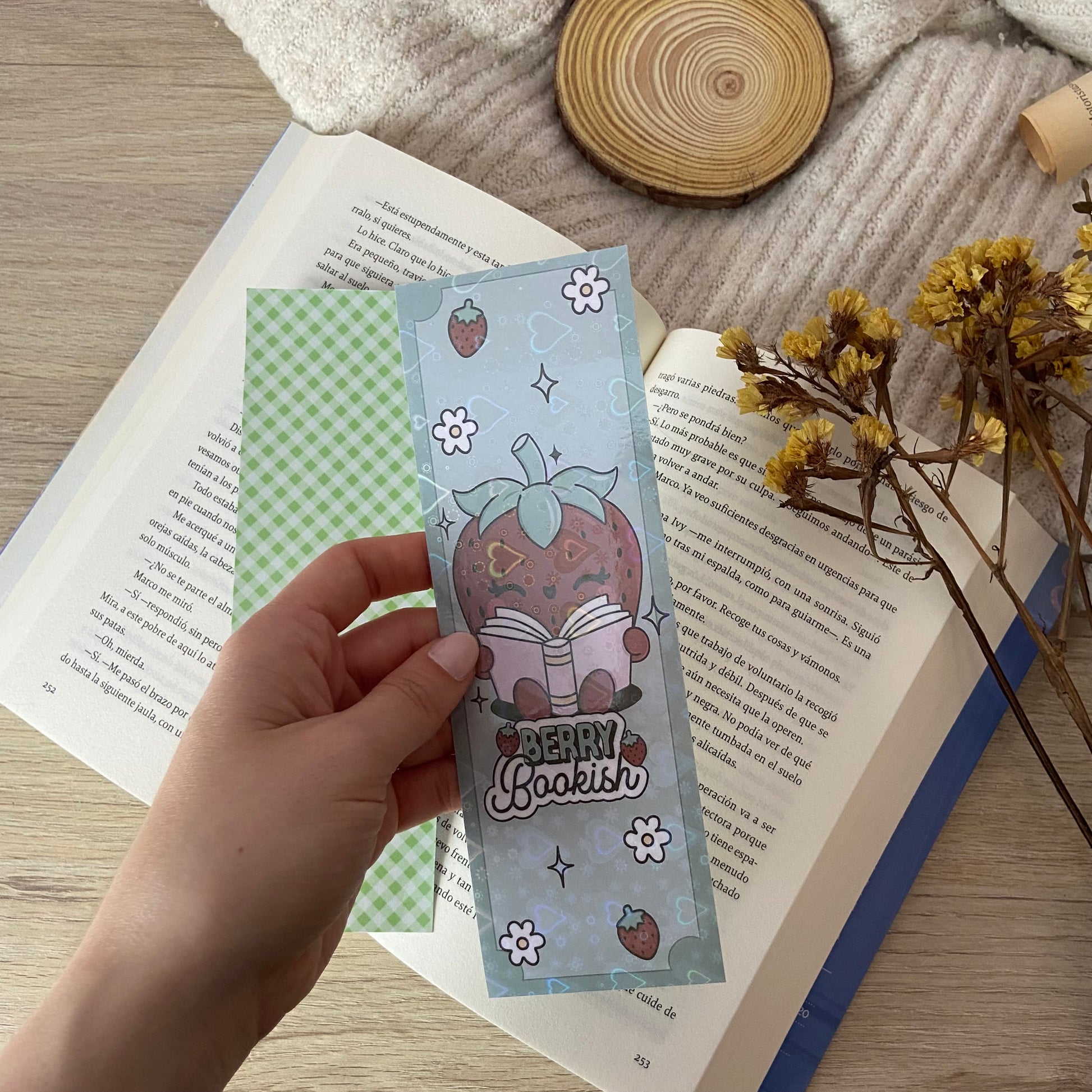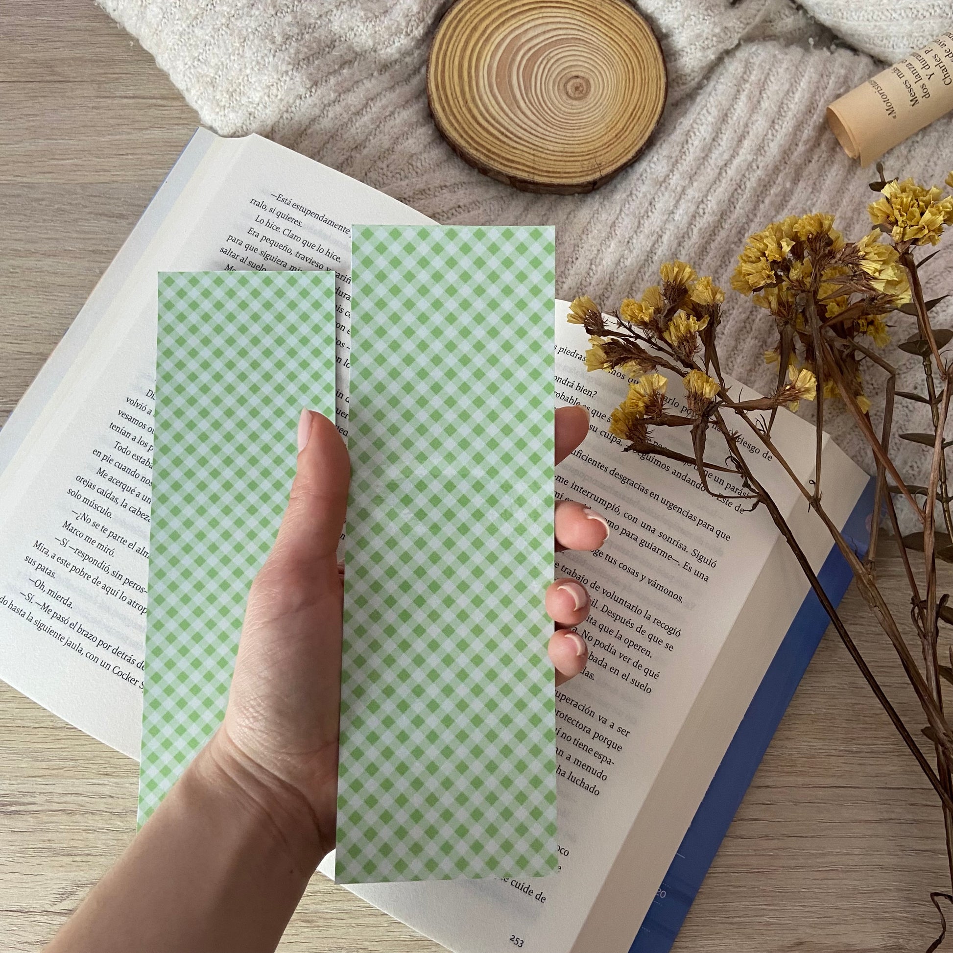 Marcapáginas de papel holográfico plastificado con vichy por la parte de atrás