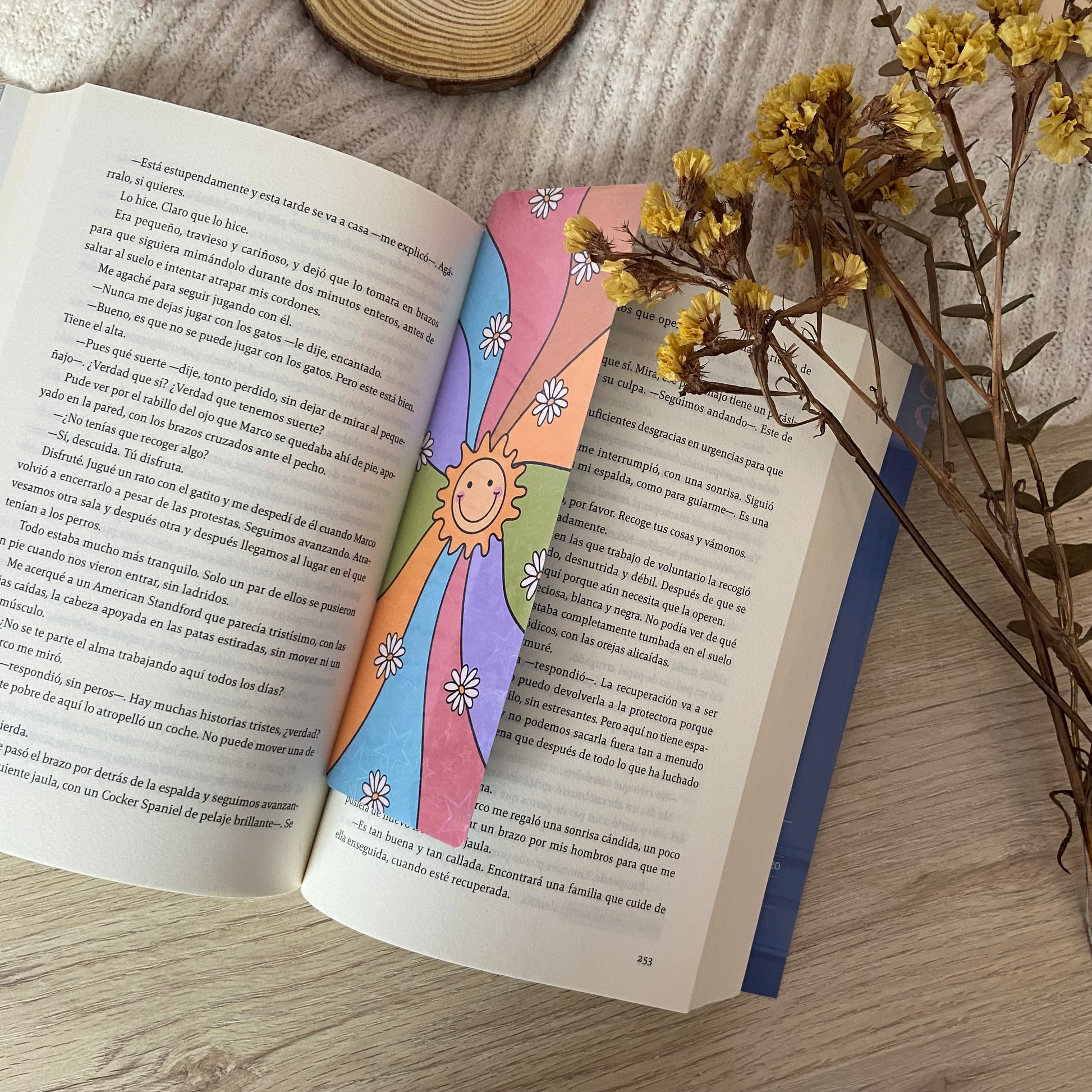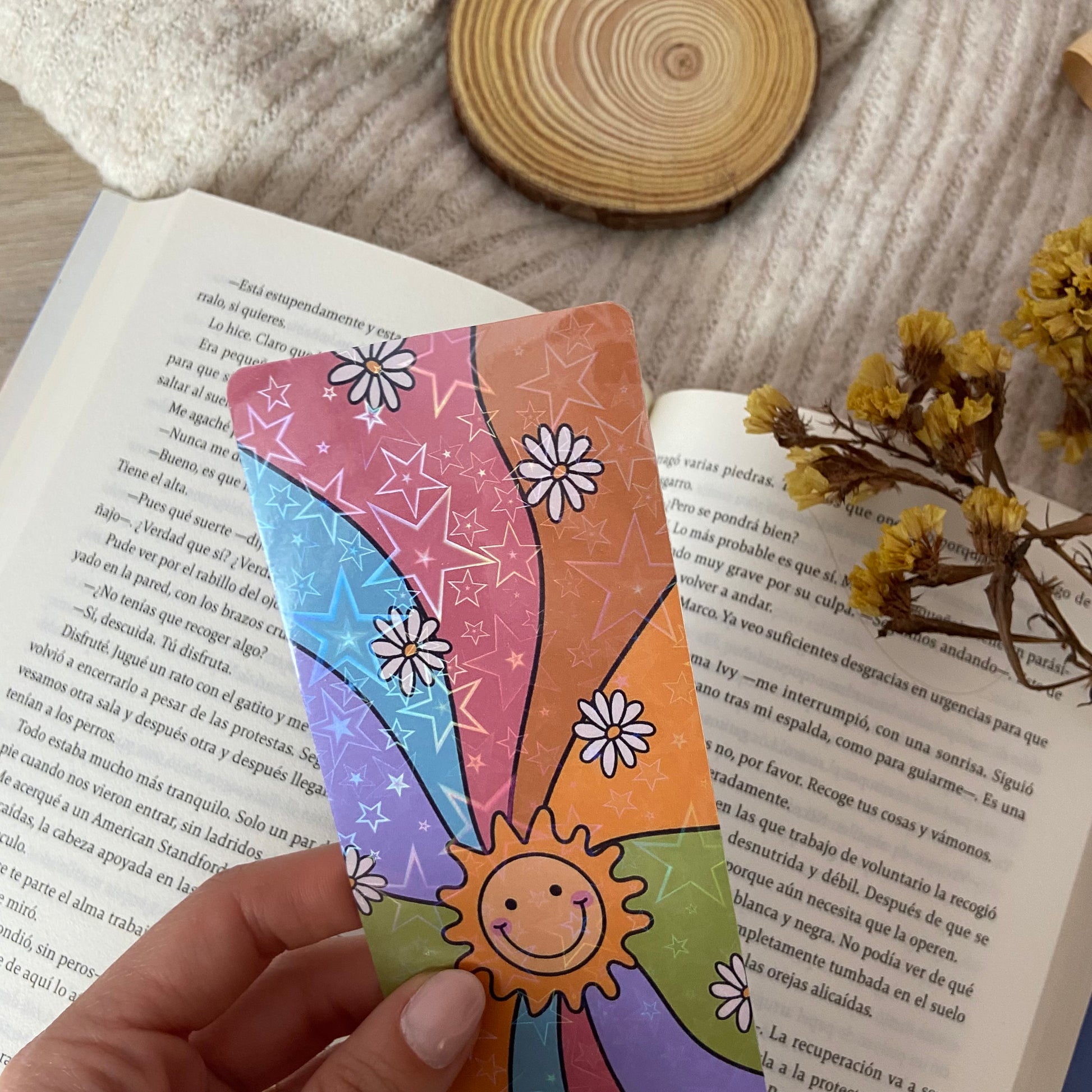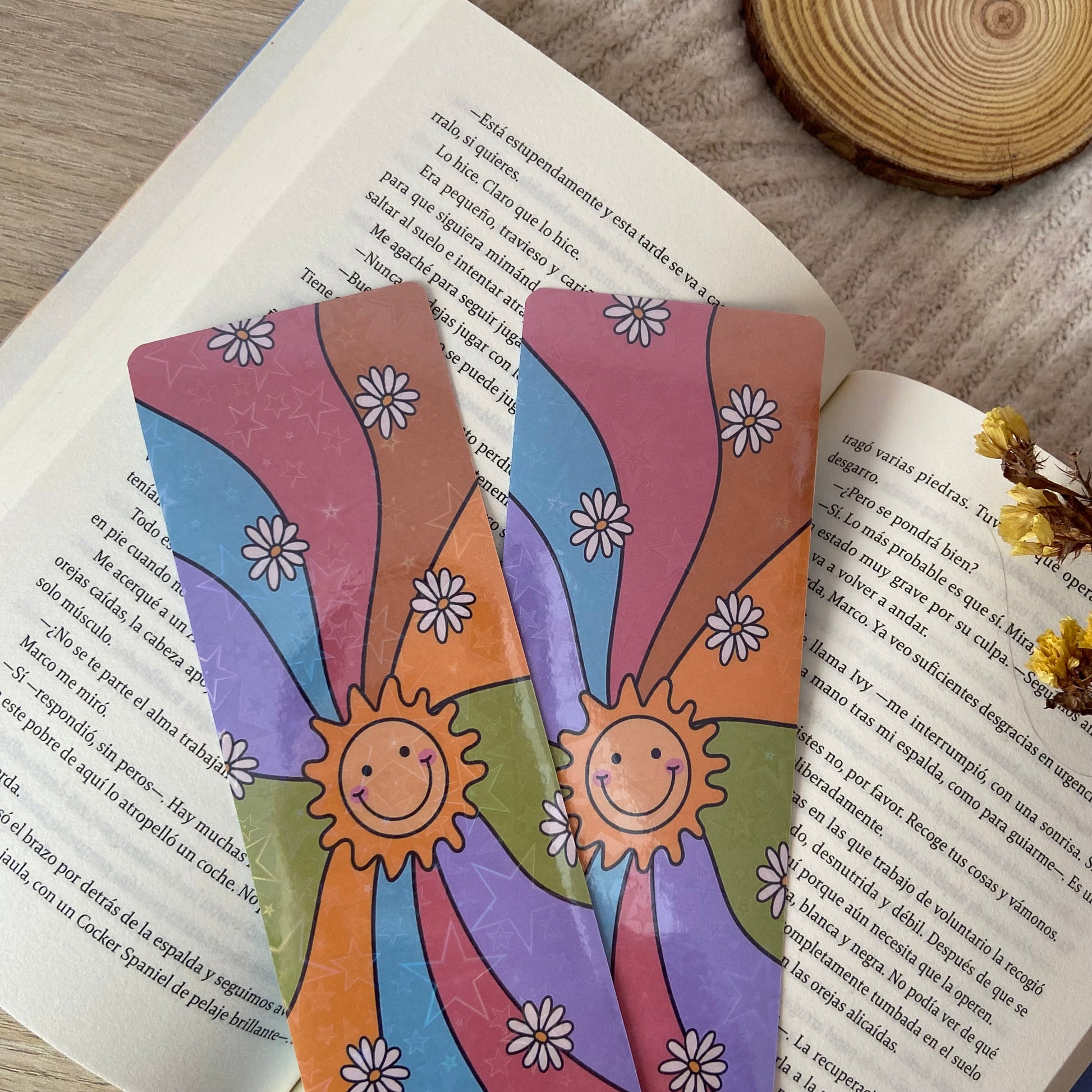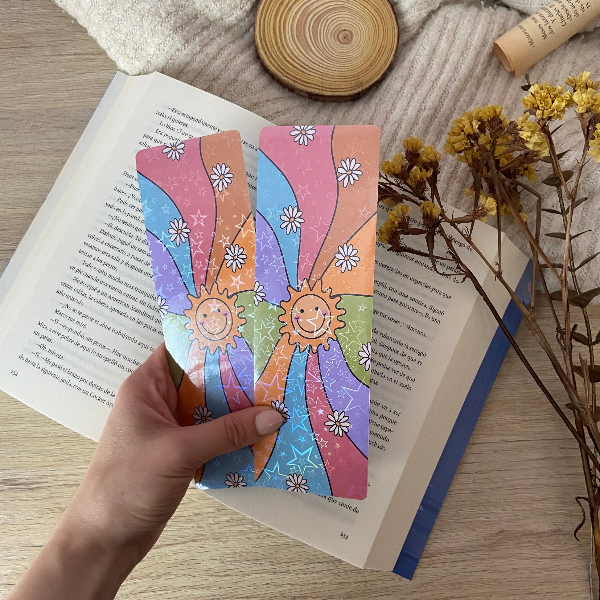 Marcapáginas de papel holográfico plastificado con vichy por la parte de atrás